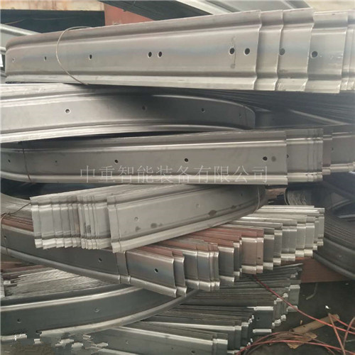 1、原料采用高強(qiáng)合金帶鋼;通過冷壓變成W型帶鋼,根據(jù)長度要求截斷,再進(jìn)行打孔;