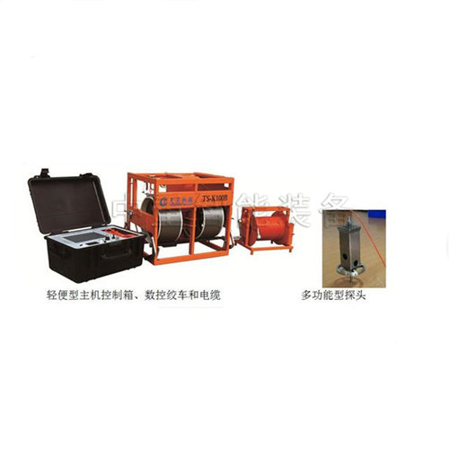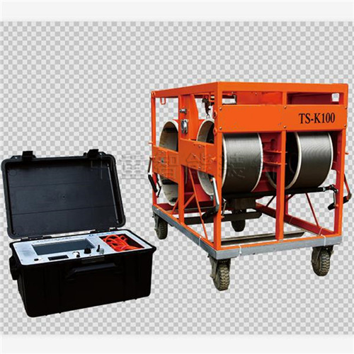 TS-K100DC(B)多功能型超聲成孔成槽檢測(cè)儀由主機(jī)控制箱、孔徑沉渣一體探頭、探頭升降數(shù)控絞車和電纜絞車組成??讖匠猎惑w探頭和深度測(cè)量裝置集成在數(shù)控絞車上,探頭由兩根鋼絲繩牽引上升或下降。電纜絞車一頭連接在探頭上,另一頭通過(guò)信號(hào)連接線與控制箱信號(hào)接口連接;數(shù)控絞車通過(guò)絞車控制電纜與控制箱電機(jī)控制接口線連接。整套系統(tǒng)在主機(jī)的控制下進(jìn)行探頭升降、信號(hào)采集和深度測(cè)量等工作。